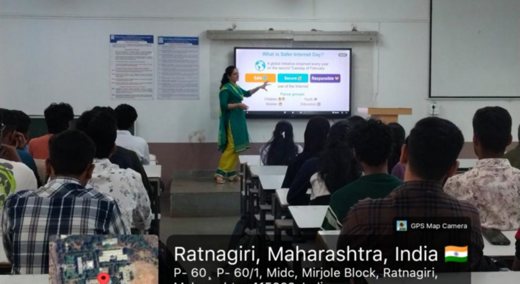 Prof. Sprooha Athalye explained the significance of Safer Internet Day and elaborated on this year’s theme, highlighting the importance of making informed and responsible digital decisions. The session covered important aspects such as understanding digital footprints and how online activities leave permanent traces. Students were made aware of common cyber threats, including phishing, malware, and identity theft. The importance of cyber hygiene practices, such as creating strong passwords, enabling two-factor authentication, and avoiding suspicious links, was strongly emphasized. The responsible use of social media was also discussed, encouraging students to avoid oversharing personal information and to maintain digital discipline.