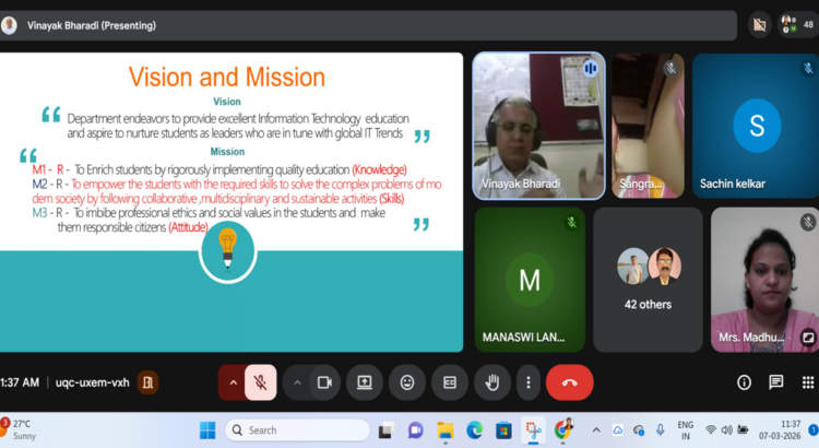 The Department of Information Technology, Finolex Academy of Management and Technology, Ratnagiri organized Online Parent–Teacher Meeting on 7th March 2026 from 11:30 AM to 12:30 PM through Google Meet. The meeting started with a welcome address by Prof. Madhura K. Zagade, Parent Meet Coordinator, who welcomed all the parents, faculty, staff and explained the purpose of organizing the meeting.